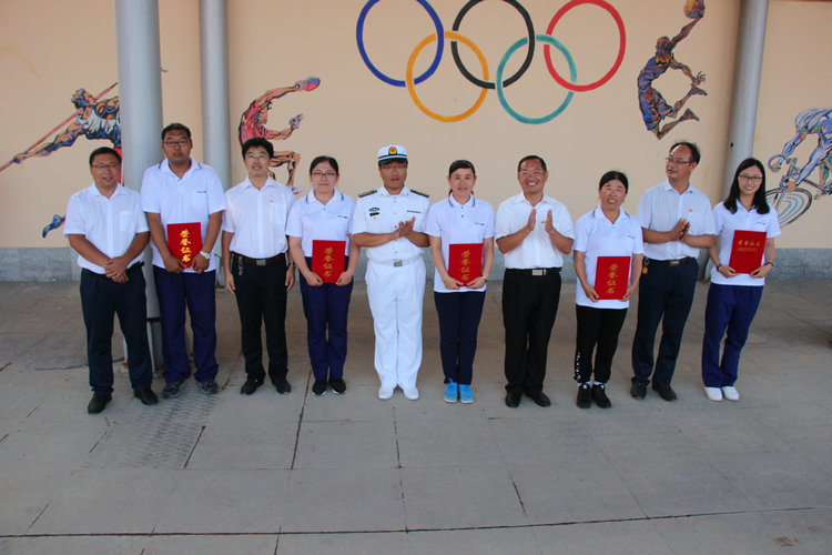 学校领导为教官颁发荣誉证书