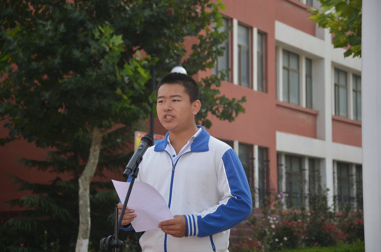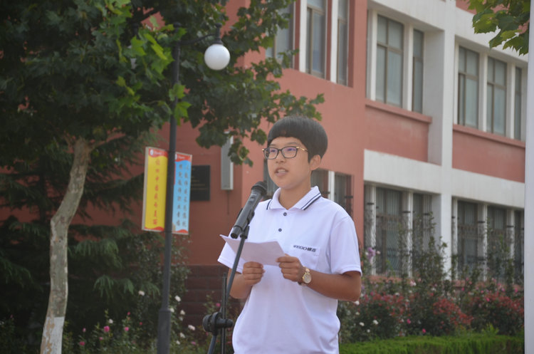2017级12班的王梓瀚同学作为新生代表总结回顾了军训的收获,在这九天里,他们收获了自我与团队的成长,变得自立、自信、自强,他倡议所有同学一起怀揣梦想,满怀斗志,心存感恩,坚定信念,坚持不懈的迎接未来的每一次挑战。2016级老生代表4班黄选怡同学欢迎2017级新生加入幸福四中这个大家庭中,并给学弟学妹们的高中生活提出了一些建议。教师代表张相林老师勉励全体同学要勤奋学习,提升技能,展现自身的核心素养,超越自我。
