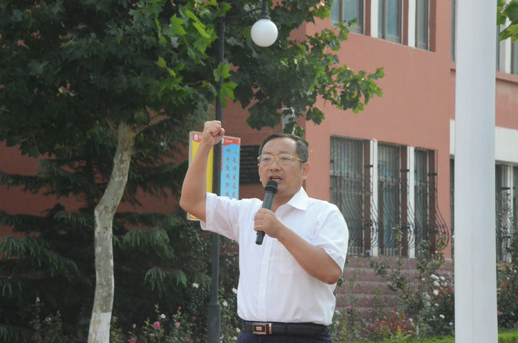 高长春校长在典礼上代表学校致辞。高校长首先对2017级新生及新教师加入幸福四中这个大家庭表示热烈的欢迎,同时欢迎全体家人们安全返回大家庭中。在教师节即将来临之际,高校长倡导全体学生向教师行礼,感恩教师为每一个学子的成才成长所付出的辛劳。在本次典礼上,高校长向全校发出倡议:努力打造幸福四中,向全省100所特色高中冲击。高校长指出打造幸福四中,就是要让每个人拥有归属感、成就感和幸福感,在相互尊重中获得尊严,在相互关爱中获得幸福;就是要尊重师生的个性,挖掘潜力,一切为了师生的健康、幸福与发展服务,努力做最好的自己,成就品质人生;就是要坚持立德树人的课程观,涵养德性,启迪智慧,舒展生命,净化心灵,培养德智体美全面成长的人;就是要坚持以中华优秀传统文化为根基,突出“诚信”文化,践行“和正规勤精实”六字工作方针,在潜移默化中进行教育,让四中因我们而美丽。