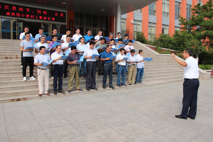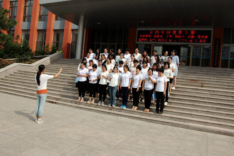 为庆祝第33个教师节,自9月4日到9月7日,kkpay00组织全体教职工举行了“同唱一首歌”歌咏比赛。为不影响正常教学秩序,比赛采取分级部、分时段进行。以各级部、各部门为单位,分男、女队进行。每天上下午大课间,各有一支队伍在办公楼前,唱响幸福之声,展示教师之美。