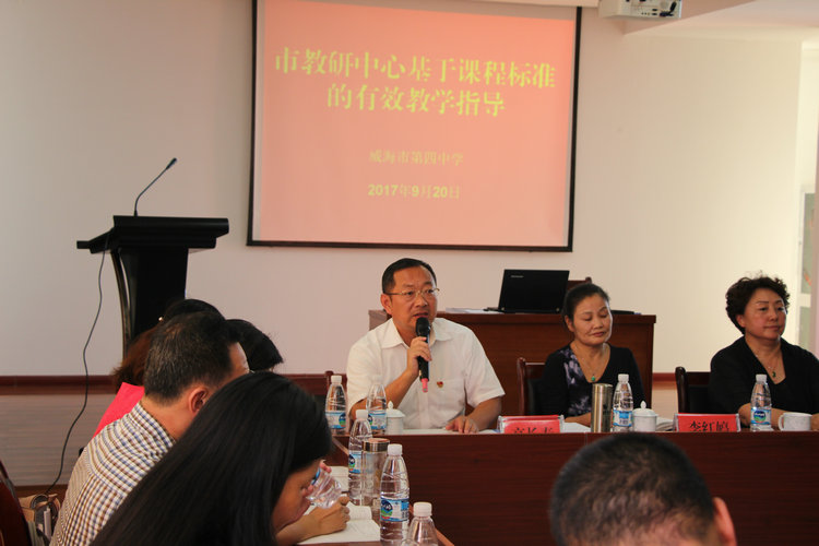 9月20日,威海市教育局于国贞副局长、基教科程斌科长、教研中心祝广文副主任带领各学科教研员,到幸福四中开展高一、高二有效教学视导活动。高长春校长、邓思源副校长、王建光副校长、全体中层领导及全体一线教师参与了此次活动。