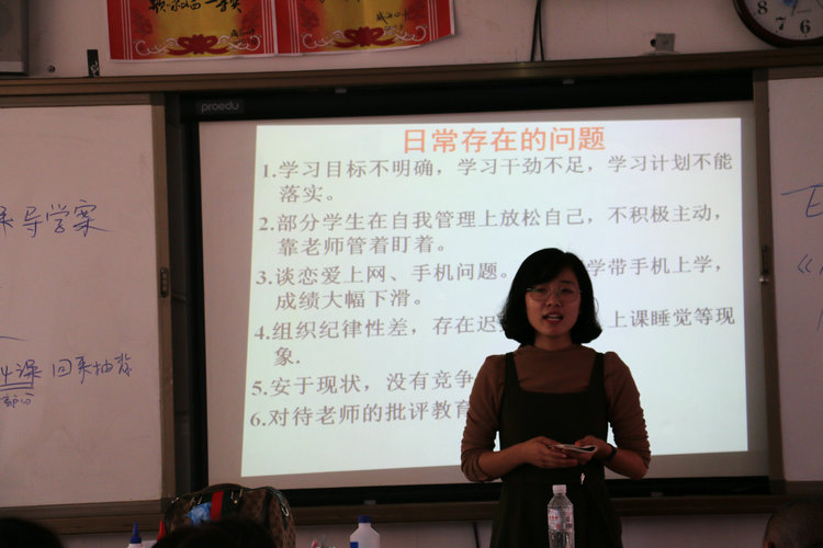 随后家长们进入各自班级进行班级家长会。为迎接家长会,班主任和学生们精心布置教室,用多姿多彩的活动图片展现班级发展,形成温馨和谐的教育氛围。各班创新家长会模式:有的班级借用多媒体图文音响设备让家长会有声有色;有的班级家长收到了孩子写的一封饱含真情的感谢信;有的班级为了让家长更全面的了解孩子在校真实的学习状态,采用同学互评的方式把对方的评价写出来供家长阅读。会后班主任和部分家长进行个案座谈,帮助成绩起伏大的学生家长分析问题症结所在。