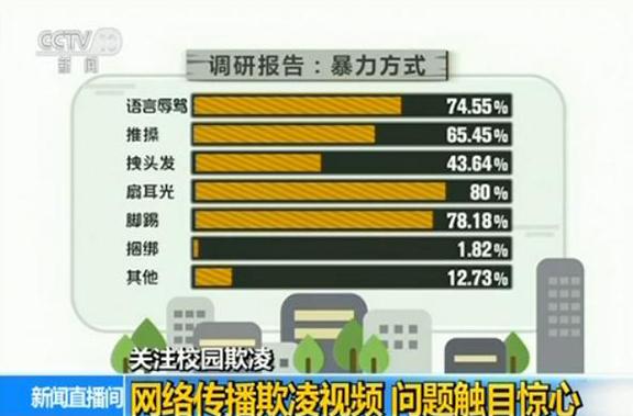 “校园欺凌”严重影响着青少年的身心健康,而大量的相关视频在网络上传播则使影响进一步扩大,对当事人构成严重的二次伤害。央视记者就曾对网络上流传的一百个校园暴力视频进行了分析,暴露出的问题令人触目惊心。
