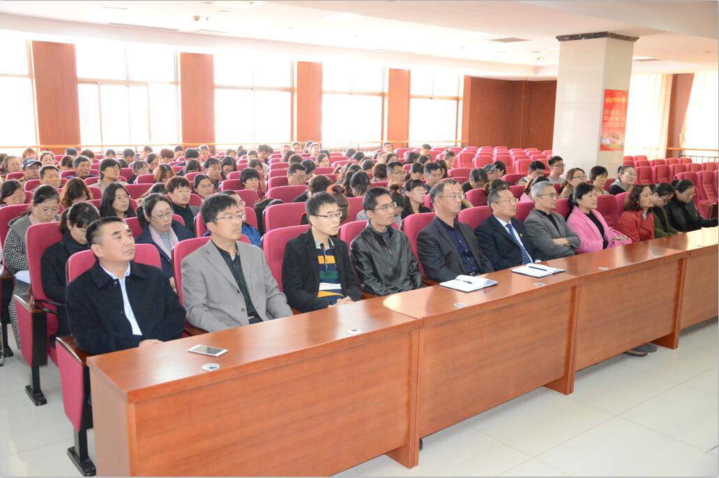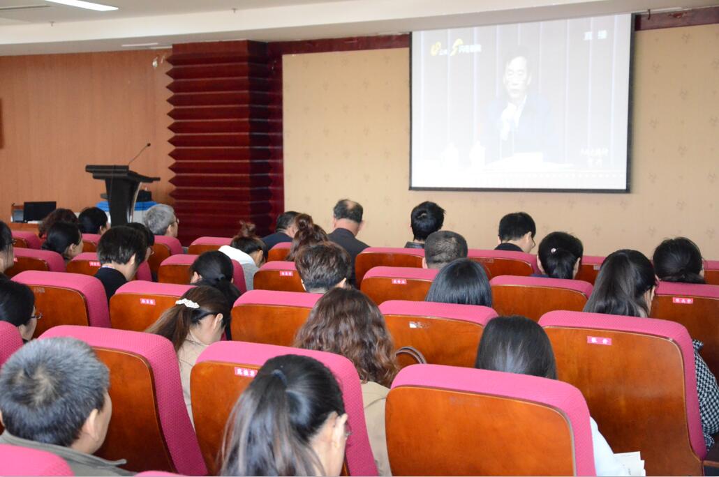 图为我校全体教师观看报告