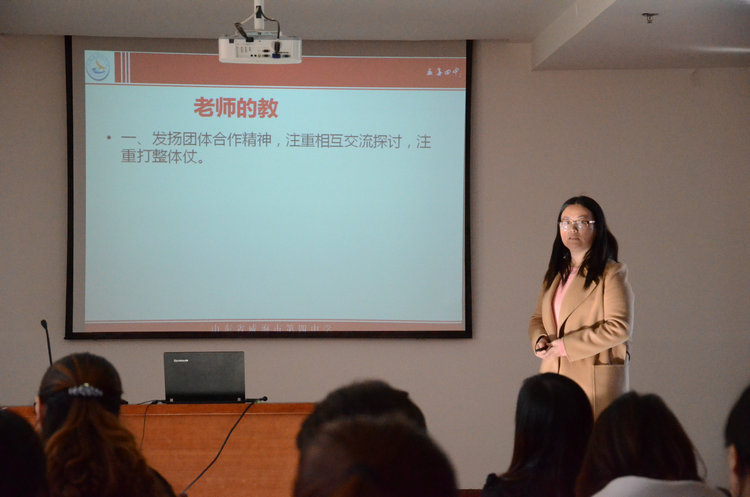 图为石智超老师做经验交流