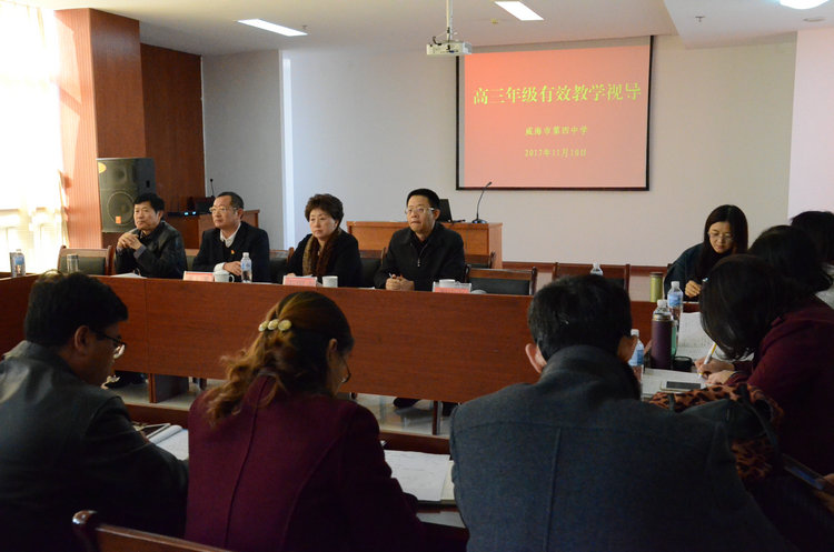 11月10日,威海市教育局于国贞副局长、教研中心祝广文副主任带领各高考学科教研员,到幸福四中开展了高三一轮复习“有效教学”视导活动。高长春校长、邓思源副校长、王建光副校长、全体中层领导及全体一线教师参与了此次活动。