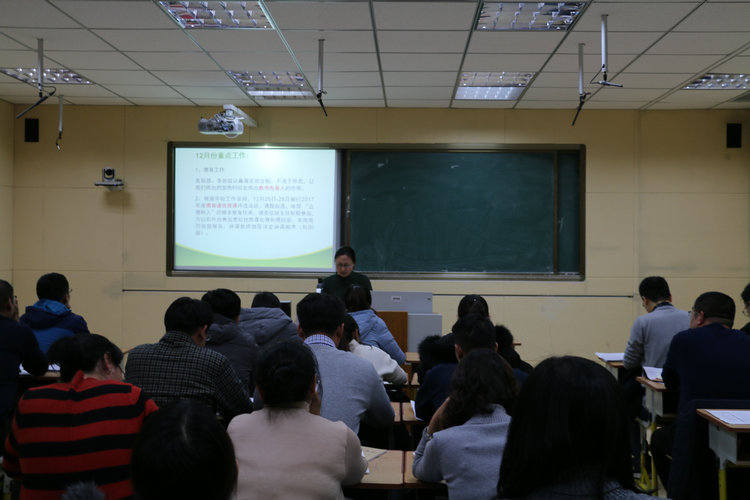 随后,学生发展研究中心邢燕主任就下一阶段如何行之有效地开展德育工作进行了解读,并就12月份需要落实的班级安全管理、卫生管理及元旦晚会等几项重点工作做了部署,为今后班主任开展工作提供了理论支持,让班主任明确了开展学生管理工作的流程和尺度。