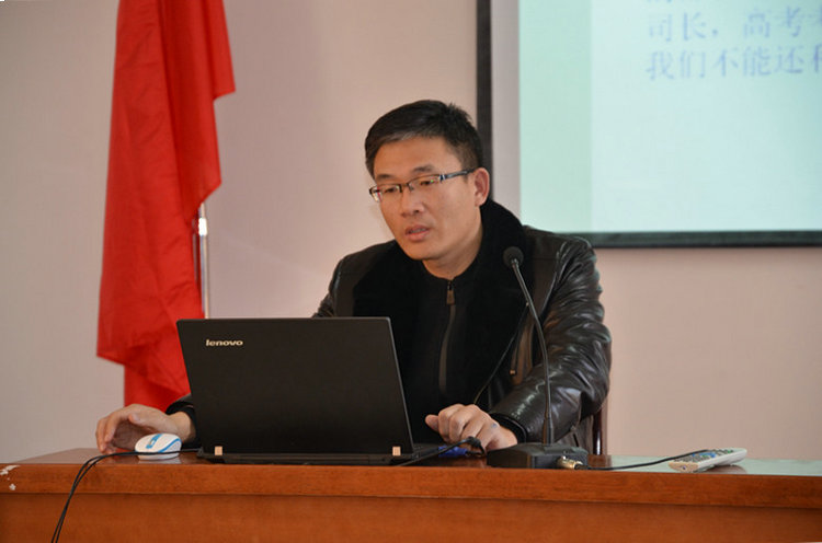 图为张学平老师做交流