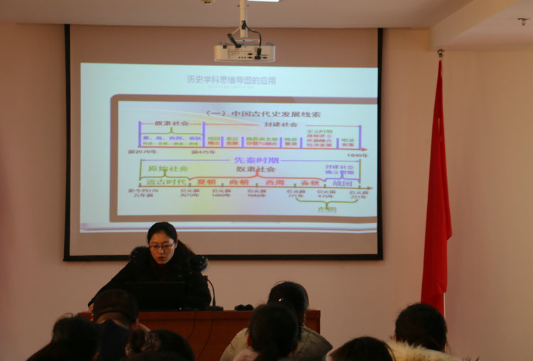 随后,焉阳老师分享了历史组备考策略。焉阳老师认为学生成绩的主要决定因素有教师讲授、学生听课和熟练程度。因此,在今后备考中应做到三点:一备学生,要整体教学与个别指导相结合;二要备课,要增加课堂容量,提高课堂效率;三要强化训练,每天巩固复习。