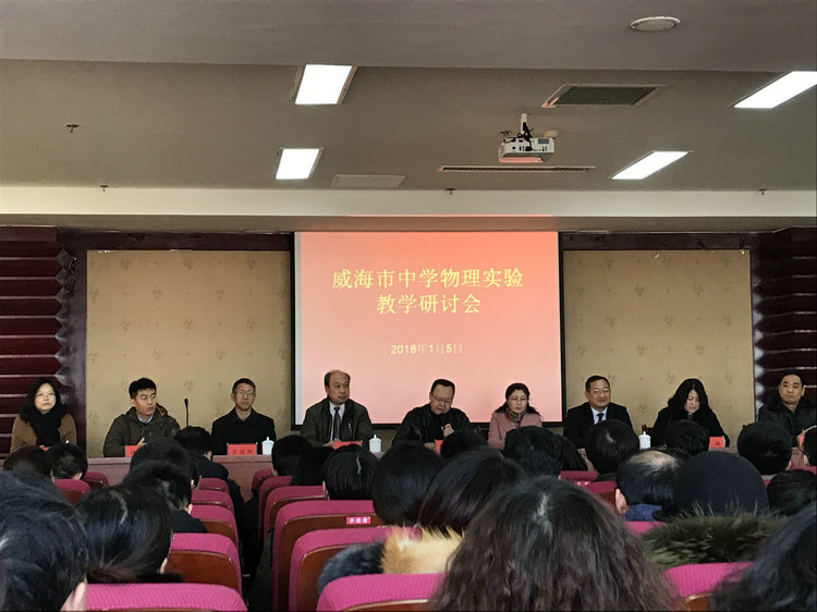 为进一步提升我市中学物理教学水平,重视对学生实验探究的物理核心素养的培养,威海市教研中心邀请鲁东大学物理与光电学院在我市设立“鲁东大学中学物理实验教学研究基地”,并于2018年1月5日在kkpay00隆重举办了威海市中学物理实验教学研讨会议,中学物理十三五课题组成员以及各区市初、高中物理教研员、骨干教师参与了此次活动。会议由高中物理教研员姜妮老师主持。