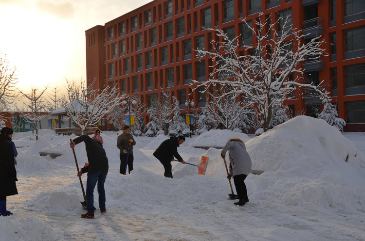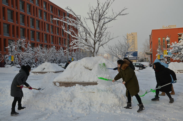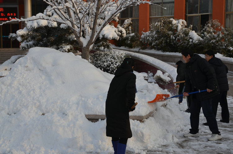 1月23日,一场大雪如期而至,雪后校园积雪严重,给出行带来了不便。为确保校园内的师生安全,1月24日早晨,我校教职工一下班车,立即自发参与到扫雪工作中。大家按照提前划分好的扫雪责任区,扫的扫、铲的铲,校园内铁锹敲击路面的声音哗啦啦响成一片,一派热火朝天的景象。学生下课后,也有序组织好,清扫各自班级卫生区域。冬日的阳光播撒在每个人身上,集体协作的劳动热情让每个人感觉格外温暖。很快,在师生们的努力下,校园里清扫出来了方便出行的道路。铲除积雪,不仅是为了方便师生出入,更是凝聚师生真情,传播幸福能量,展示学校新气象。据了解,此次大雪学校已做好了充分迎接的准备,在校园楼梯口铺上了防滑垫,并通过大屏幕温馨提醒,“路面湿滑,注意脚下”,确保了师生的出行安全。
