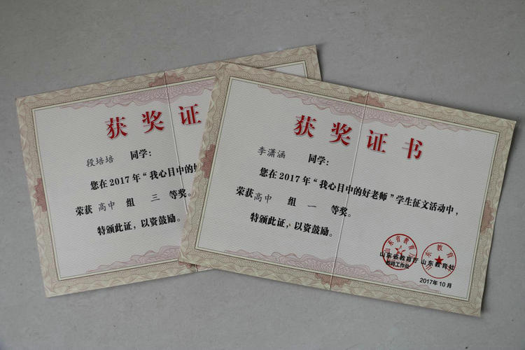 在班级语文老师的指导下,通过层层选拔,2014级段培培(已毕业)、2015级李潇涵和2016级郑煜栋三名同学的作品代表我校参加比赛。最终,李潇涵和段培培同学分别获得一等奖、三等奖的好成绩。