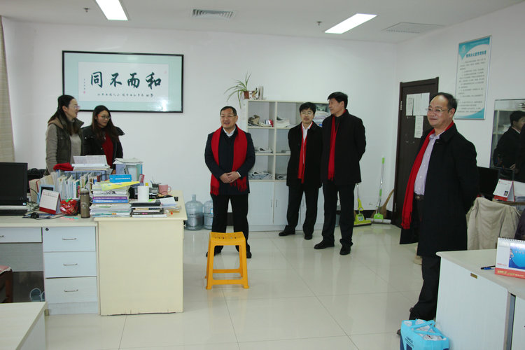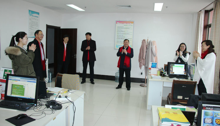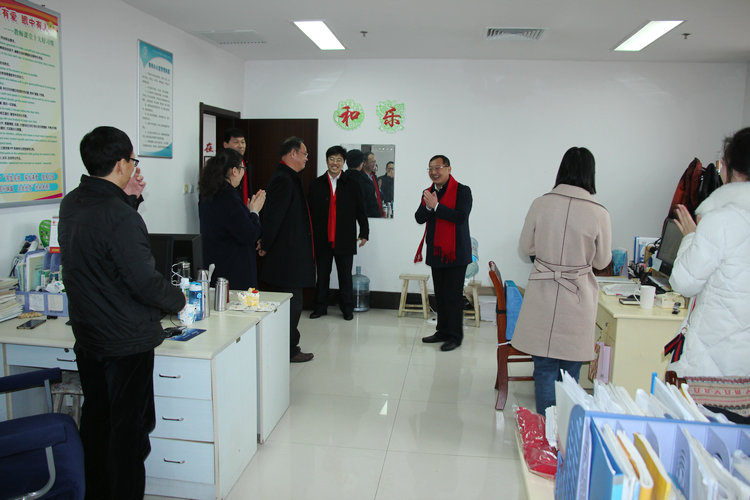 随后,高校长、邓校长、王校长和办公室于春波主任走进各办公室看望老师们,带去了学校的新年问候。高长春校长代表学校向老师们致以新年祝福,祝愿老师们在新的一年里身体健康、万事如意、阖家幸福,并对老师们在过去的一年里为学校发展所作出的努力表示衷心的感谢。校领导们与老师进行了亲切的交流,细心的询问他们在新学期准备工作中是否有难处。同时,也为老师们加油打气,期望在新的一年里,大家能立足于自己的岗位,爱岗敬业、奋发进取,全校教师携手并进,提升学校教育教学水平。