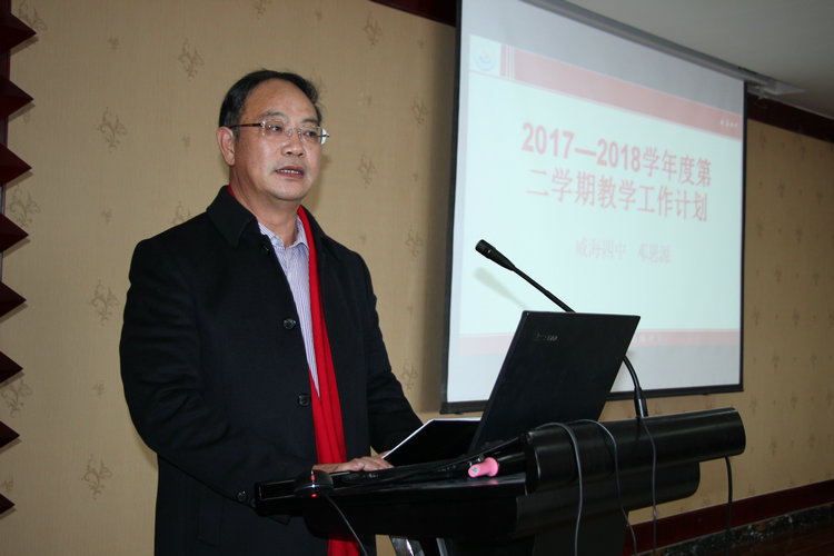 随后邓校长进行了新学期教学工作部署。邓校长主要从以下方面对教学工作进行强调:一是加强师资队伍建设,稳步推进教育科研工作的提升;二是加强教学活动的规范管理,稳步促进教育教学效果的提升;三是继续做好新高考研究准备工作,提升全校上下应对新高考的实战水平;四是进一步优化学校的课程结构,形成具有幸福四中特色的校本课程体系;五是加强教务管理,做好教育教学保障工作;六是加大现代化教学手段与学科教学的整合力度,以用促教。