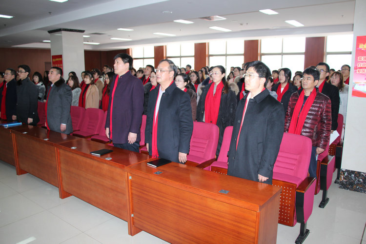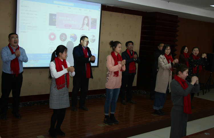 在庄严的国歌声中,会议正式开始。首先由刘强主任、桂新光主任、于海生主任、邢燕主任、王伦胜老师及青年教师代表组成的舞蹈团队,用喜气洋洋的舞蹈《恭喜发财》,为大家带来了新春祝福。
