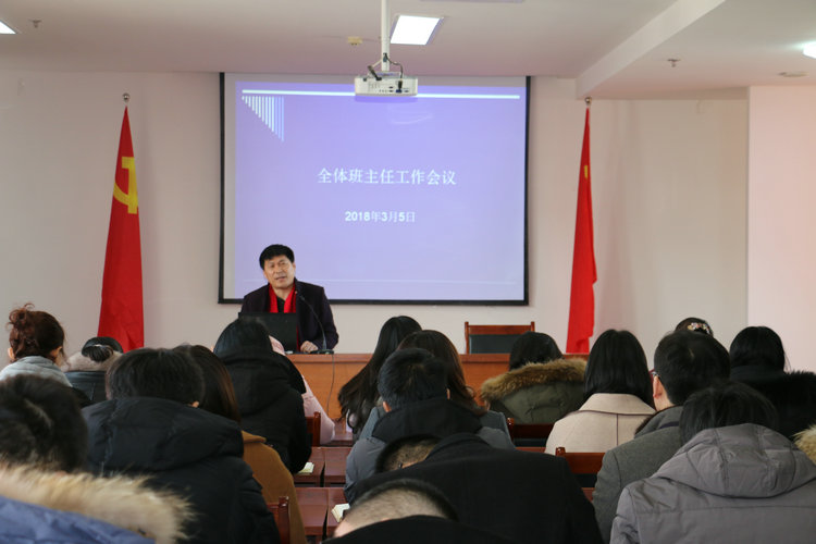 高长春校长在会议开始时讲到,班主任工作虽然压力大,但是可以使自己的能力得到锻炼和提升,有利于应对以后更大的挑战,对个人的发展是非常重要的。他希望班主任老师能够耐心细致的做好学生的德育工作,养成按制度管理班级的习惯,刚柔并济,出色圆满地完成本学期的教育教学工作。