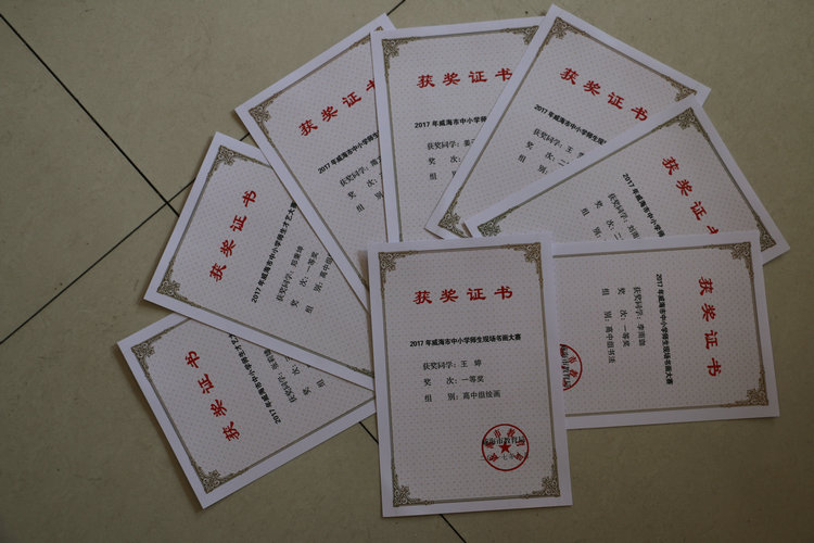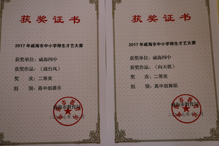在刚刚结束的2017年威海市中小学生才艺大赛评选中,在我校上交2个音乐作品,16个美术作品中有12个作品获奖,其中一等奖作品3个,二等奖作品6个,三等奖作品3个,喜获大丰收。
