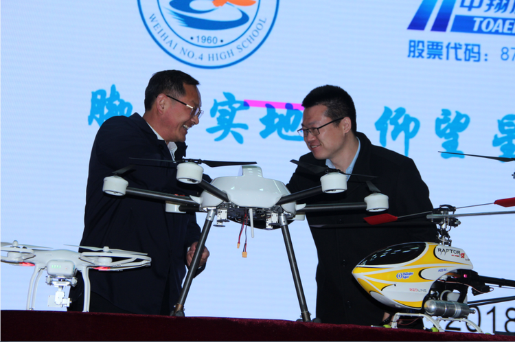3月19日上午10时,我校在学校体育馆举行了幸福四中无人机捐赠仪式暨无人机科普讲座,高长春校长与天津中翔腾航科技股份有限公司杨丁董事长进行了无人机捐赠交接仪式,全体高一学子和教师参加并见证了这一幸福时刻,邓思源副校长主持了捐赠仪式。