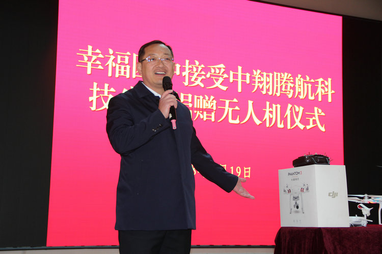 在接受无人机等高科技产品捐赠后,高校长代表学校对中翔腾航科技股份有限公司助力我们学校的发展表示感谢。高校长指出,十九大报告中10余次提到科技、50余次强调创新,创新不仅是国家发展的需求,也是孩子们成长的需要。有了中翔腾航这类创新型企业的无私捐助,会快速推动孩子们的发展,孩子发展了我们就幸福了。高校希望我校幸福学子们以此次活动为契机,增强创新思维,善做创新事情,力争到2035年国家基本实现现代化时就能够成为我们国家创新的栋梁,成就自己幸福人生!
