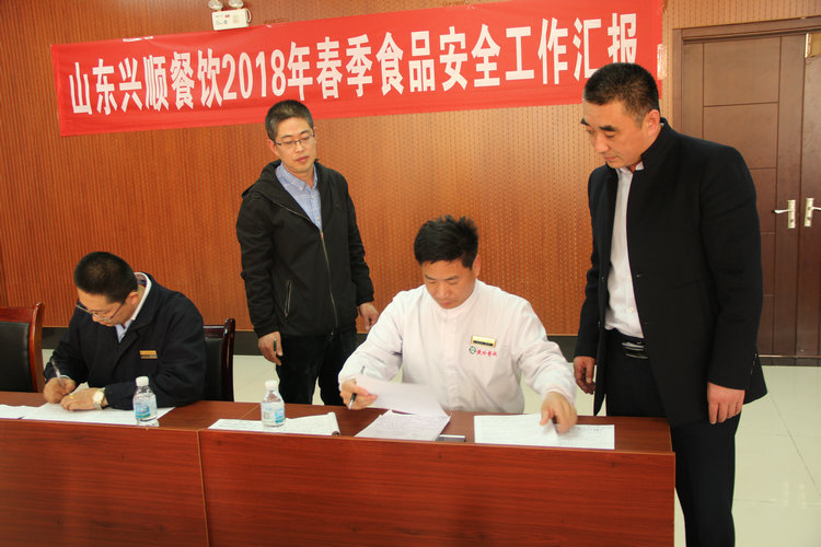 会议进行了五项议程,一是由兴顺餐饮的代表做春季食品安全工作交流;二是各位家委会的代表结合上午的参观考察和就餐体验活动,就关心的问题与餐饮服务单位进行了互动,现场提问、答疑;三是学生研究发展中心邢燕主任对征集的学生意见进行了反馈,两位餐厅负责人进行答复、表态;四是总务处耿少华主任对学校本学期的食品安全工作进行了部署;五是餐厅及自动售货负责人签订了本学期食品安全承诺书。