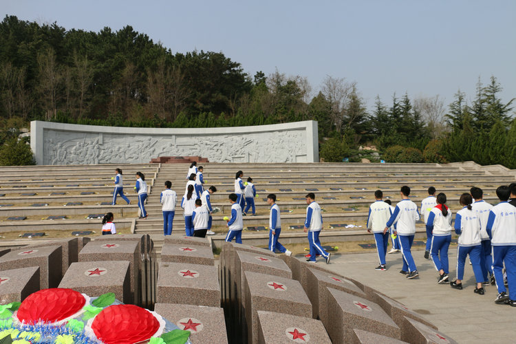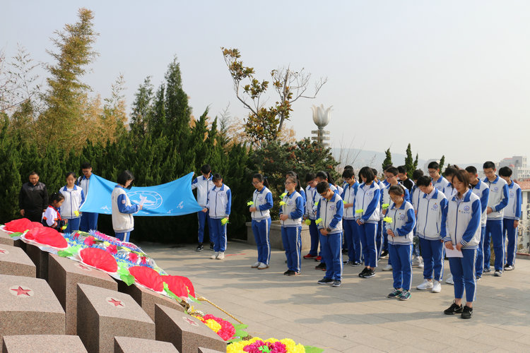 上午8点,同学们怀着对烈士的无限崇敬的心情整装待发。踏入烈士陵园,沉重而庄严的气氛笼罩着大家,在老师的带领下大家有条不紊的到达烈士陵园。活动在浓烈的爱国情怀中拉开序幕,首先师生们向烈士敬献了花圈,并默哀三分钟,以示对先烈最崇高的敬意。随后,学生代表发言,带队老师发表讲话,让同学们能够将活动体验升华,把对革命先烈的哀思之情上升到为实现中国梦而不懈奋斗的行动中。最后,全体学生高举右拳立下了庄严的誓言,宣誓活动结束后,全体师生绕烈士陵园一周,敬献小黄花。师生们用鲜花和默哀这些最传统方式向烈士表达自己的无限敬意和哀思。