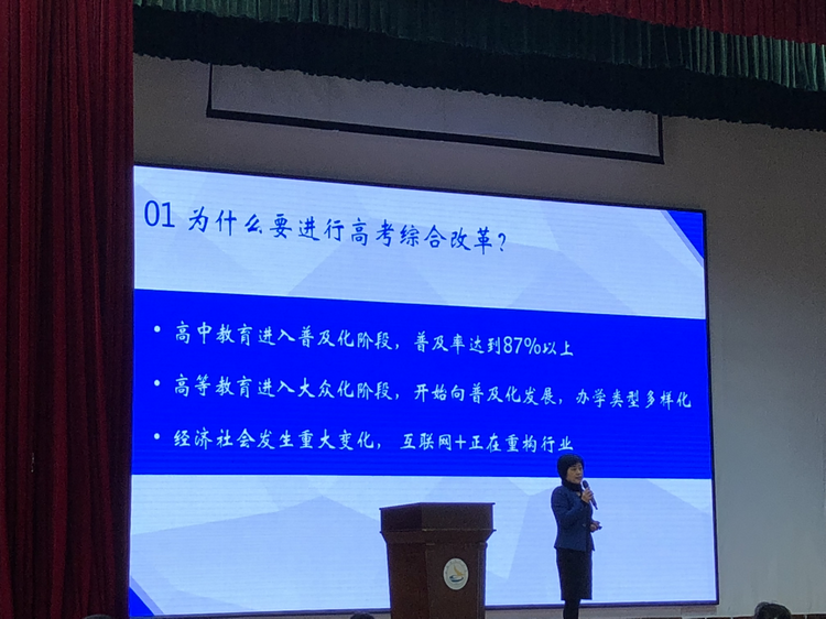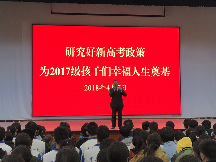 3月27日,山东省人民政府正式对外公布《山东省深化高等学校考试招生综合改革试点方案》,试点方案发布后引发社会高度关注和热烈反响,对试点方案给予了赞许。为进一步帮助学生家长解读相关政策,4月7日,kkpay00邀请山东省教育电视台何蕾主任,对相关政策向我校高一学生和家长进行了详细解读。1400多位高一学生及家长、全体高一班主任参加了此次高考综合改革方案解读会,会议由高长春校长主持。