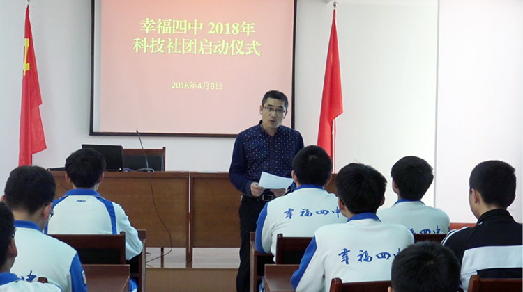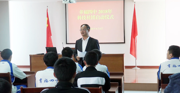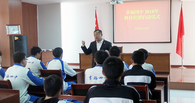 经过一个月的精心准备,2018年4月7日下午,我校新学期幸福四中科技创新社团启动仪式在二楼会议室成功举行。高校长、邓校长参加会议并对创新社团的发展给予了鼓励和厚望。