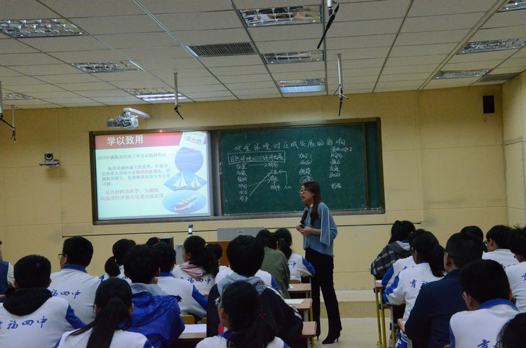 4月11日,2018年威海市直高中地理优质课评选活动暨骨干教师培训活动在kkpay00录播教室举行。来自市直各高中的8位优秀地理教师参与评选展示,威海市高中地理教研员王建芹老师莅临指导,市直各高中30多位地理学科的骨干教师全程参与了此次活动。