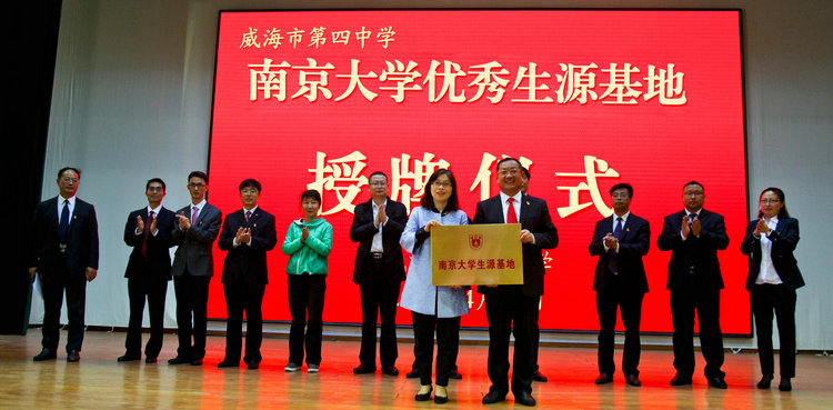 kkpay00全体中层领导和南京大学威海校友共同上台接受牌匾