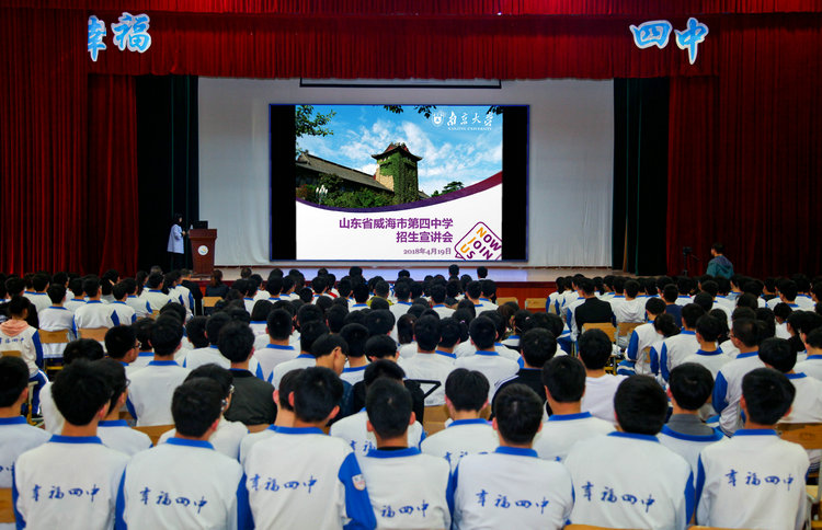 4月19日下午,南京大学优质生源基地授牌仪式在我校举行。南京大学地球科学与工程学院书记、山东招生组组长毛予倩和南京大学电子科学与工程学院都思丹教授来我校考察交流。陪同前来的还有两位南京大学威海校友:威海日报传媒副总经理李伟和东北证券威海总经理李杰。我校高长春校长、邓思源副校长、王建光副校长等热情地接待了来宾。