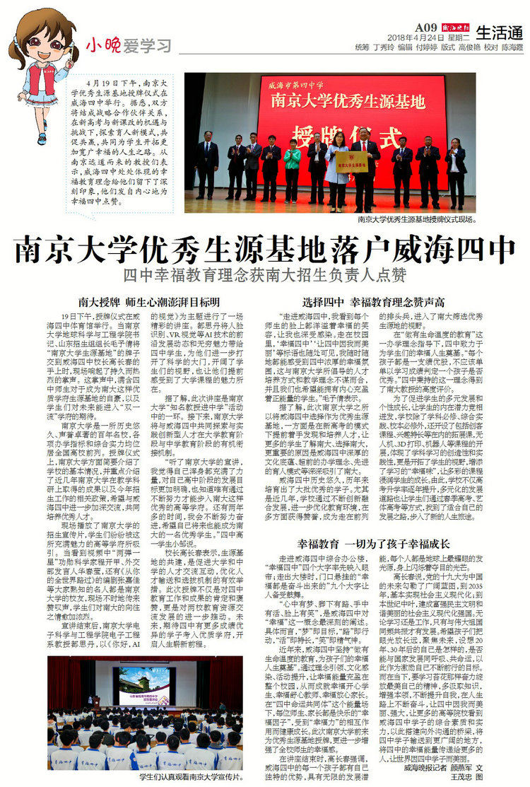 高校长感谢南京大学的信任与支持,激励孩子们奋斗成才