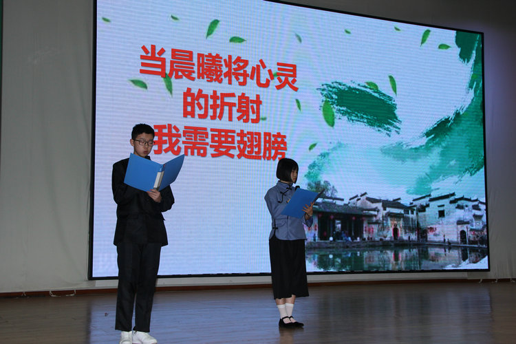 在雄壮的国歌声中,典礼仪式正式开始。全体人员共同观看《成长》视频,回顾两年来的共同学习、生活的点点滴滴。在《我长大了》的青春告白中,各班代表投放同学们的心愿卡,这其中有着对未来的憧憬,有着对自己的鼓励和承诺。孩子们用一首首青春激扬的歌曲,告诉家长和老师们自己已经拥有了为未来拼搏的信心和决心,请相信我们能走出自己人生的精彩。