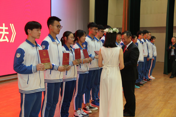 成长是面对困难愈加坚定的眼神。在“我能担当”环节中,邓校长为学生自主管理队伍工作表现优秀的27名同学颁奖,表彰他们高度自律、担当、责任、奉献的意识。高校长为每个班级颁发《《中华人民共和国宪法》,号召同学们忠于宪法,维护宪法权威,履新宪法职责,忠于祖国,忠于人民,为建设富强、民主、文明、和谐美丽的社会主义现代化强国努力学习!全体同学在教师代表的带领下精神饱满的进行了十八岁成人宣誓。