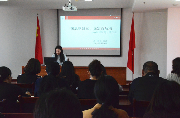 会议首先由苗晶老师和谢富强老师做班级管理方面的主题发言。两位班主任通过鲜活的班级管理案例,从不同角度分享了他们的教育智慧,苗晶老师用“深思以致远,谋定而后动”的基本原则向大家阐述如何以班规促成良好习惯的养成,谢富强老师认为教育学生要从如何使学生认同自己下手,从而启发他们内心深处的良知与能力,达到知耻而后勇的良好效果。