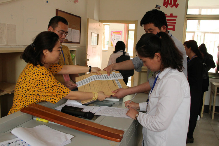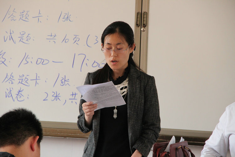每场考试前,都会对监考老师进行监考事务的嘱托,详细确认试题、答题卡、条形码等分发情况
