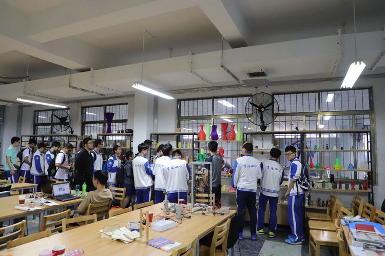 在哈工大(威海)大学生创业实训基地,同学们对这里的创新创业项目进行了深入了解。同学们对3D陶瓷打印非常感兴趣,争先观察了解打印成品。在参观哈工大HRT车队的展示空间与车辆组装车间时,同学们的兴趣高涨,纷纷与学长和小伙伴们进行互动。哈工大(威海)HRT车队特意为kkpay00的同学们拿出了他们为创客教育组装的电动车给大家体验。同学们争先恐后的体验创客教育带来的魅力。