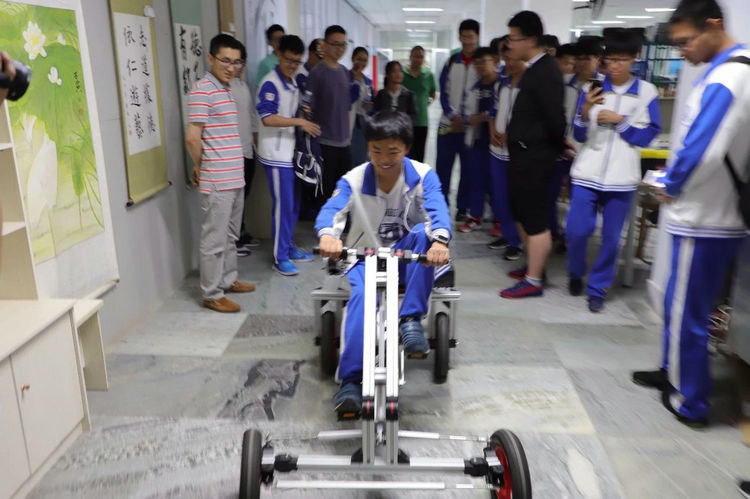 哈工大(威海)HRT车队展示了他们为创客教育组装的电动车给大家体验