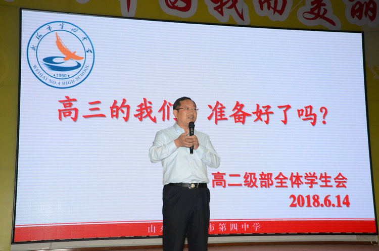 6月14日晚,我校高二级部在体育馆召开了主题为“高三的我们,准备好了吗?”期末学习动员大会。会议由桂新光主任主持,高长春校长、高二级部全体班主任参加会议。