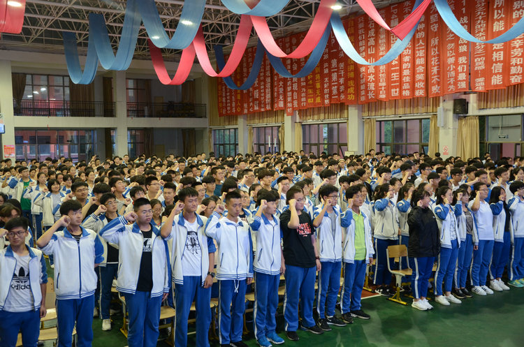 在学子互动环节,首先由侯瑞昕等同学通过视频展示了2016级学生晚自习学习状态与2015级学生备战高考时的差异。以学生的角度、学生的口吻、以对等的身份向同学们发出倡议:即便自己不是绝顶聪明,也要相信勤能补拙,未来的日子里请不要轻言放弃。人生难免会有失败,但请相信付出一定会有回报。随后,代晓东同学带领全体学生宣誓:一心一意搞好高考复习,奋战百日报答父母深恩;以分秒的计时冲刺高考,以人生的拼搏努力前行。