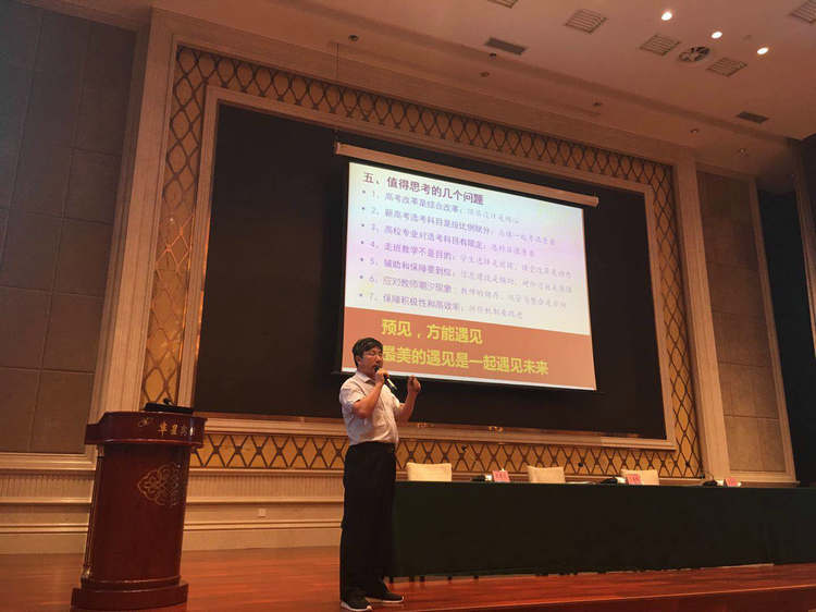 研讨会主要分三项议题,先是由齐鲁名校长刘金水做了《以考改招改撬动课改教改,促进学生全面而有个性的发展》的主题报告。他希望各所学校在高考与招生制度改革面前不能穿新鞋走老路,要认清形势,更新观念,学透方案,把握本质,以积极主动的态度和改革创新行动,迎接挑战。只有抓住机遇,直面挑战,乘势而上,学校才能在新一轮竞争中获得发展先机。刘校长高度评价了高中联盟在2018年高考中取得的成绩,尤其指出kkpay00在特色高中建设道路上表现突出。
