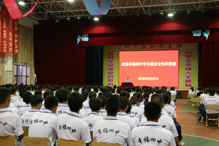 遵守交通规则,是每个公民的基本素养,关乎我们的生命安全。为进一步增强师生的交通安全意识,掌握交通安全知识,严格遵守交通法,做文明交通参与者,8月27日晚18点,我校特邀威海市公安局交巡警六大队谷主任到校,为高一年级全体学生进行“交通安全知识”专题讲座。