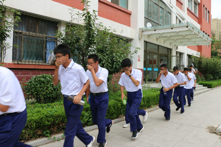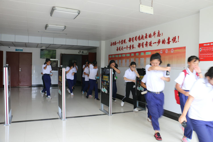 “纸上得来终觉浅,绝知此事要躬行”,为检验学生的应急能力,28日下午13:00 时,学校组织学生参与了火场逃生体验活动。当火灾警报响起,四百多名住宿生迅速、有序地从宿舍中跑出来,在各楼层疏散引导员的指挥下,弯着腰,捂住口鼻,按规划好的疏散线路到达空旷操场上指定的地点集中。并由班主任清点人数后上报现场总指挥,无一人发生跌倒、摔伤等事故。