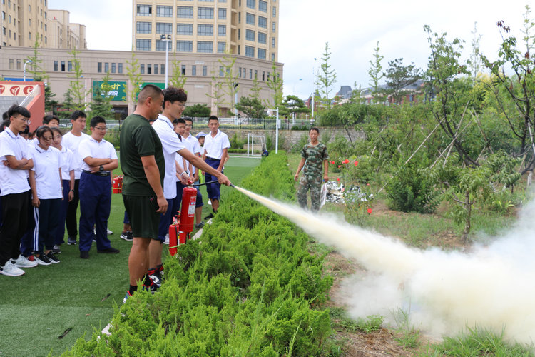 随后,威海市临港经济开发区消防大队开元中队的消防官兵,给高一师生讲解了干粉灭火器的成分、原理、结构并讲解了干粉灭火器的使用方法以及注意事项。随后消防官兵现场进行了演示,并指导师生对干粉灭火器的使用进行了演练。