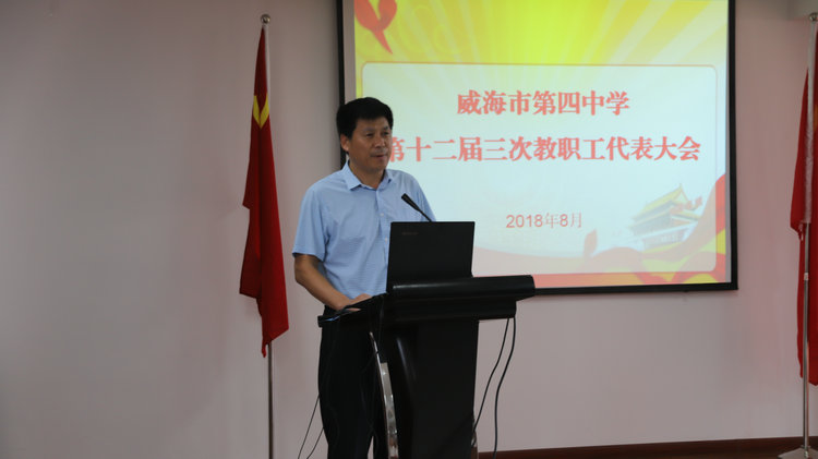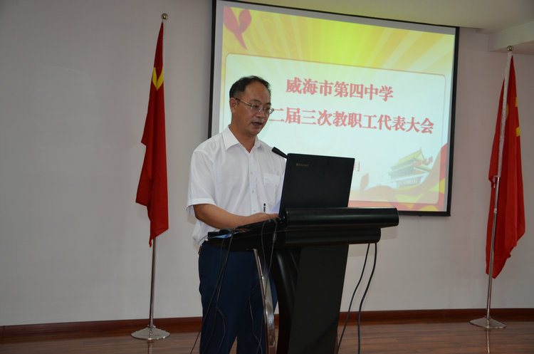学校工会主席邓思源同志致闭幕词,他指出大会的召开为学校带来了新的目标、新的生机、新的力量,也带来了学校发展的新机遇,希望各位代表将来继续以饱满的热情和主人翁的姿态,从学校工作重心和发展大局出发,塑师德、研课改、提质量、求发展,为全力打造“幸福四中”起到强有力的推动作用。