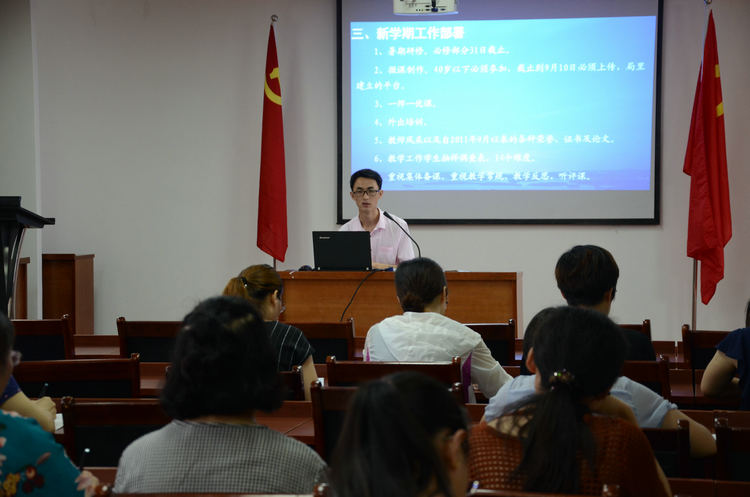 新学期新挑战,为强化团队合作,明确职责分工,提高教师的教育教学水平,部署新学期教师发展研究中心的核心工作,kkpay00于8月29日上午在行政楼二楼小会议室召开了2018-2019年新学期备课组长培训会。