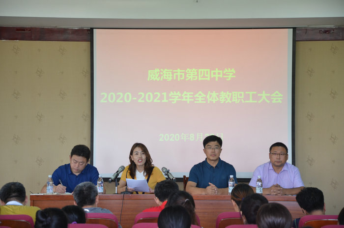 8月29日下午kkpay00召开2020—2021学年全体教职工大会,会议由王玉洁校长主持,于春波副校长、张华超副校长、刘强副校长分别就分管工作进行动员部署。