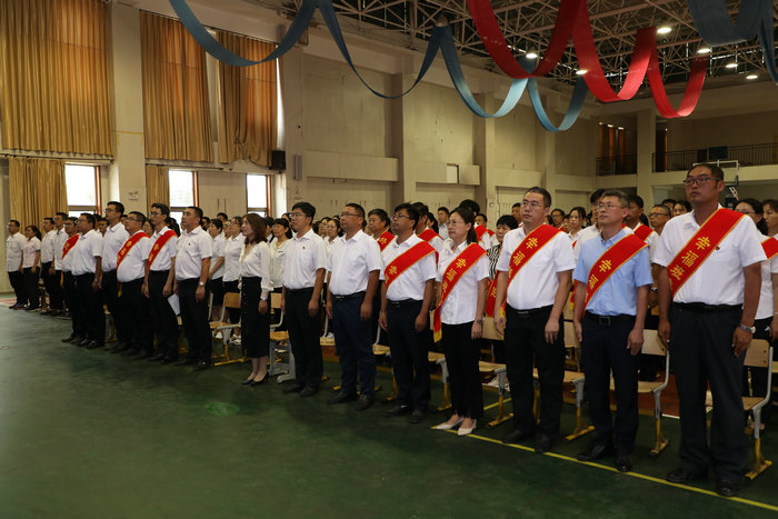 王玉洁校长向默默耕耘、辛勤工作在教育教学和管理服务一线的广大教职工致以节日的祝贺,向为学校的生存发展呕心沥血、恪尽职守的每一位教职员工表示最衷心的感谢。荣誉是对过去的肯定,更是对未来的激励,希望全体教职工见贤思齐,以先进为标杆,深入全面地学习他们爱岗敬业、以生为本的师表风范和严谨治学、诲人不倦的教育情怀,让自己在追求卓越的道路上不断成长。以更加饱满的热情、旺盛的精力投入到教育教学工作中,齐心协力,共同为学校的改革、建设和发展做出新的贡献。王校长强调,今年教师节的主题是“立德树人奋进担当,教育脱贫托举希望”。教师们既要精于“授业”,更要善于“传道”,实现“经师”和“人师”的统一,做好学生生命成长的引导者,道德成长的示范者和陪伴者,用人品、学识、阅历、经验点燃学生对真善美的向往,帮助学生扣好人生第一粒扣子。