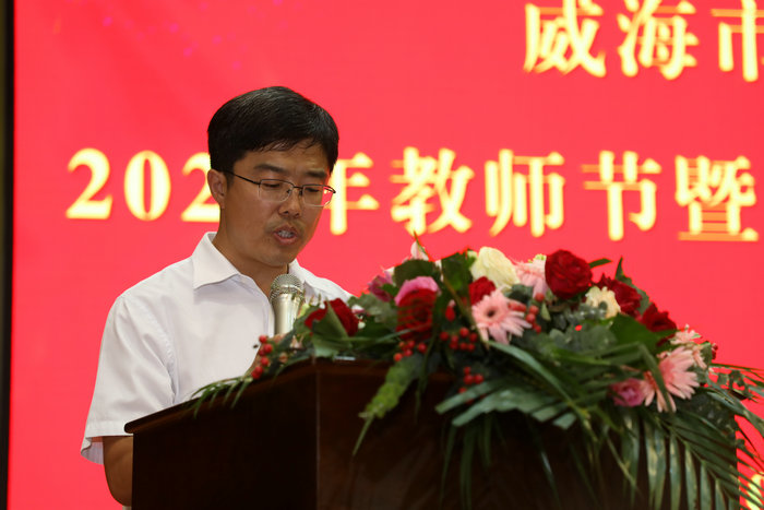 教师代表仇丽萍老师表示,从走上讲台的第一天起,无悔地坚守着教书育人这方沃土。跨上讲台,也许只用一步,但三尺讲台却是我们一生走不完的路程。作为一名教师应时刻牢记立德树人使命,承担传播知识、思想、真理,塑造灵魂、生命、人的使命,高举中国特色社会主义伟大旗帜,以习近平新时代中国特色社会主义思想为指导,弘扬主旋律,传播正能量,做先进思想文化的传播者、中国共产党执政的坚定支持者、学生健康成长的指导者,为培养担当民族复兴大任的时代新人做出应有的贡献。