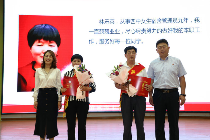 在2019—2020学年中,kkpay00涌现出了一批爱岗敬业、成绩突出的先进个人,为树立典型,弘扬先进,学校决定对丛滋兰等114名教职员工予以表彰,其中优秀教师6人、幸福朝阳29人、幸福骄阳27人、幸福暖阳2人、幸福班主任22人、幸福备课组长11人、幸福园丁2人、终身幸福奖15人。由王玉洁校长、于春波副校长、刘强副校长、张华超副校长为受表彰教师颁发证书。