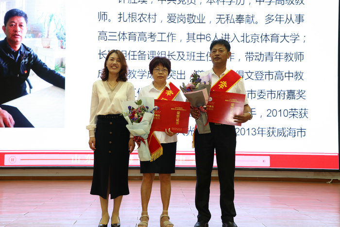 王玉洁校长、于春波副校长为市直优秀教师、优秀教育工作者颁奖